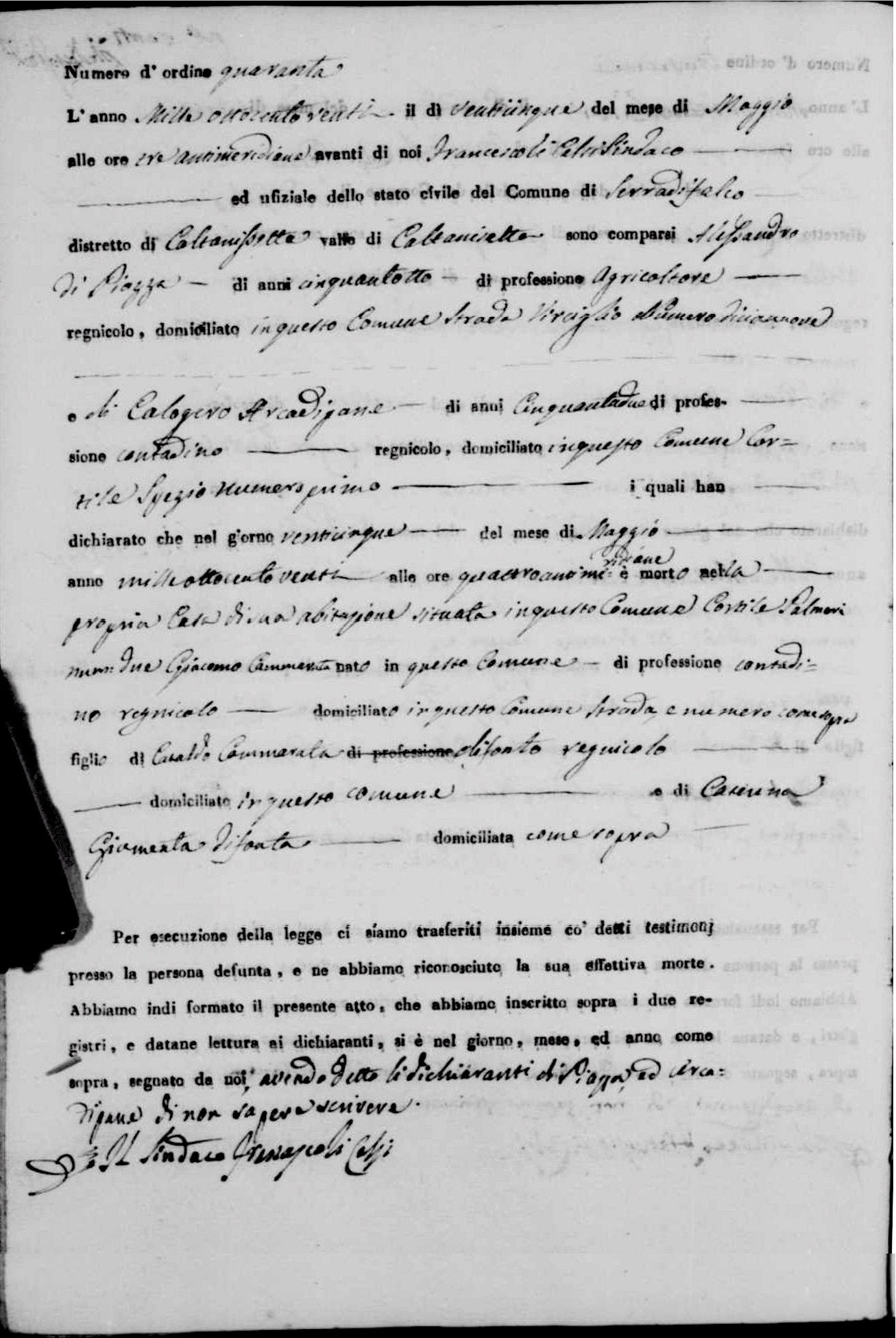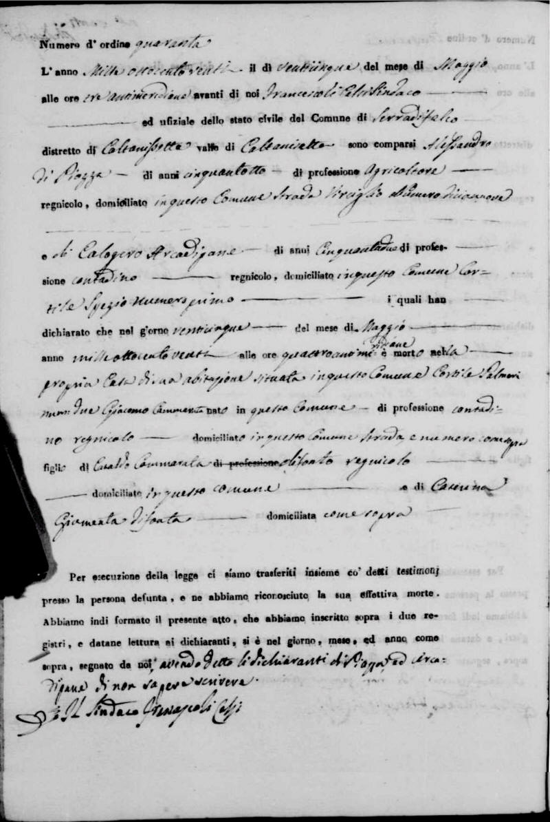From Serradifalco Stato Civile Film 1466473, 1820 Deaths, No. 40, Giacomo Cammarata, Antenati image 23/50 |